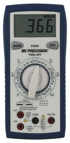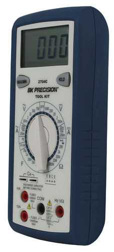 Modelul 2704C are toate functiile pentru aplicatiile de baza ale unui multimetru digital, inclusiv unele caracteristici high end la care nu va asteptati. LCD de 2000 digiti poate afisa valori de rezistenta de pana la 2 GΩ, capacitate pana la 20 uF, sau valori de castig ale tranzistorului comun emitator de pana la 1000.