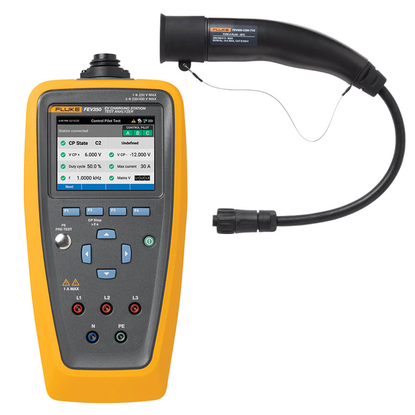 Testați siguranța și funcționalitatea stațiilor de încărcare a vehiculelor electrice AC cu instrumentul complet care este sigur, portabil și ușor de utilizat. FEV350 este o soluție completă pentru testarea siguranței și performanței stațiilor de încărcare EV AC cu conectori de tip 2 sau tip 1. Conceput pentru tehnicienii care trebuie să efectueze și să documenteze mai multe teste rapid și eficient, fără a purta mai multe unelte. Soluția include modulul software TruTest™ EV Charging pentru documentare și raportare. Soluția efectuează aceste măsurători: pre-testul de pământ PE (de protecție), inspecția vizuală, testul de declanșare 30 mA RCD + 6 mA RDC-DD, tensiunea nominală + secvența de fază, pilotul de control auto (CP) cu analiză de formă de undă, pilotul de proximitate și testarea erorilor. Măsurătorile de susținere sunt: legătura la pământ, izolația și impedanța buclei/liniei, disponibile cu testerele de instalare multifuncționale compatibile de la Fluke pentru certificarea/inspecțiile de instalare prin conexiune Bluetooth fără fir, diagramele de configurare a cablurilor și ecranele informative pentru integrarea perfectă cu software-ul TruTest pentru generarea de rapoarte. Fluke FEV350 furnizează planuri de testare predefinite și indicații de trecere/eșec privind rezultatele măsurătorilor pentru a simplifica analiza și timpul petrecut în testare. Analizorul de Stații de Încărcare EV FEV350 este proiectat conform IEC/EN 61851-1 și IEC/HD 60364-7-722.
