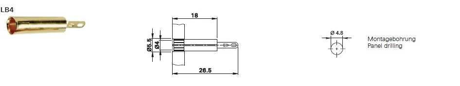 Prize rigide neizolate Ø 4 mm, din tabla de alama laminata. Priza este presata in panourile de plastic forate in prealabil sau lipita in placile cu circuite printate. Placat cu aur. Conexiune prin lipire.